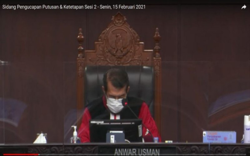 Kepastian itu terungkap dalam sidang putusan PHP kepala daerah tahun 2020, yang digelar MK secara daring dari Gedung MK RI I Lantai 2, Jakarta Pusat, Senin, 15/2/2021.