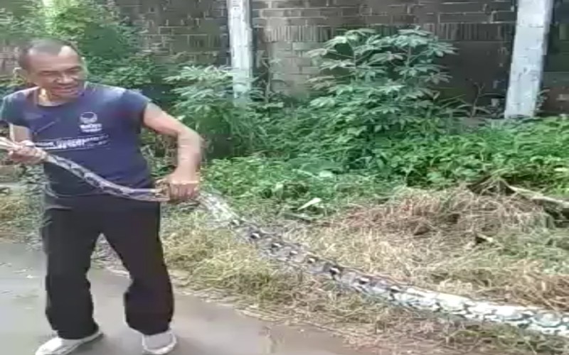 Penangkapan ular Sanca Kembang itu sempat direkam menggunakan handphone warga setempat. Dalam video amatir berdurasi 26 detik itu, terlihat tiga orang sedang memegang bagian kepala dan ekor ular. Satu orang warga mencoba mengikat bagian mulut ular menggunakan plastik.