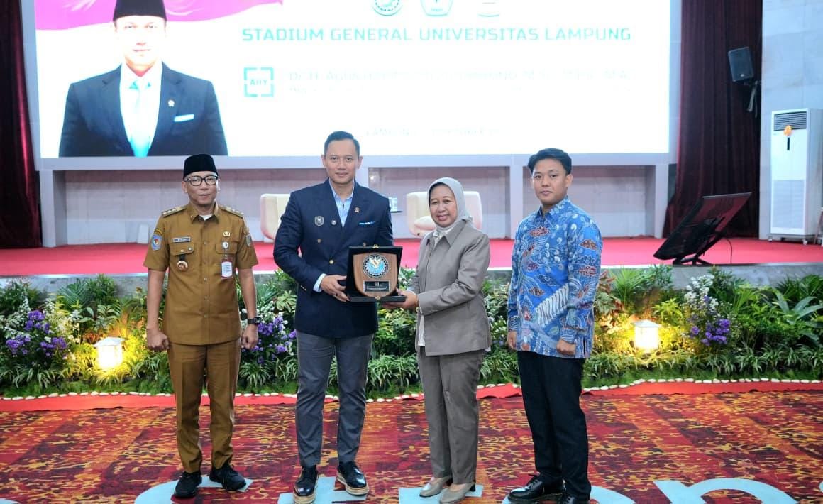 VoxLampung, Bandar Lampung – Universitas Lampung (Unila) bersama BEM-U KBM Unila menggelar stadium general bersama Dr. Agus Harimurti Yudhoyono (AHY) Menteri Koordinator Bidang Infrastruktur dan Pembangunan Kewilayahan, dengan tema berjudul “Sinergi dan Kolaborasi untuk Masa Depan Indonesia”, pada Selasa, 14 Oktober 2025, di Gedung Serbaguna Unila.
