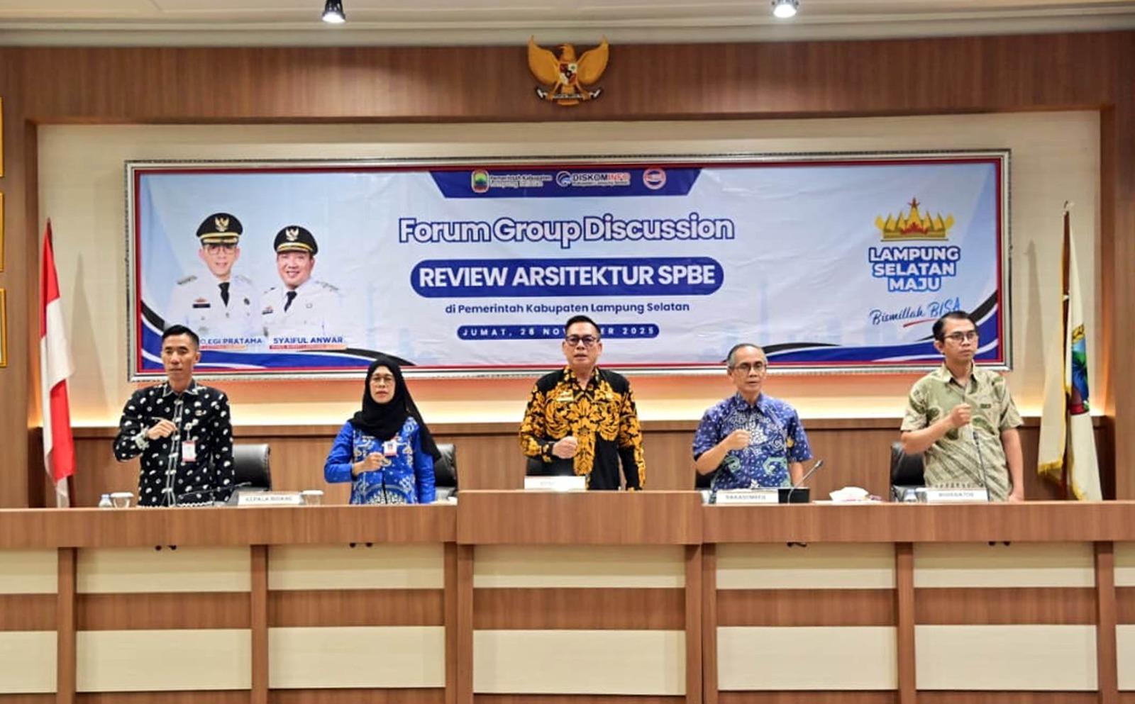 VoxLampung.com, Kalianda – Pemerintah Kabupaten (Pemkab) Lampung Selatan melalui Dinas Komunikasi dan Informatika (Kominfo) menggelar Forum Group Discussion (FGD) Review Arsitektur Sistem Pemerintahan Berbasis Elektronik (SPBE) dan Penyusunan Arsitektur Data di Aula Rajabasa, Kantor Bupati Lampung Selatan, Jumat, 28/11/2025.