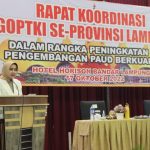 VoxLampung.com, Bandar Lampung – Penasehat DPD Gabungan Organisai Penyelenggara Taman Kanak-Kanak Indonesia (GOPTKI) Provinsi Lampung Riana Sari Arinal, membuka Rapat Koordinasi GOPTKI
