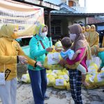 VoxLampung.com, Bandar Lampung – Ketua Tim Penggerak PKK Provinsi Lampung Riana Sari Arinal menyalurkan bantuan sebanyak 350 paket sembako kepada masyarakat yang