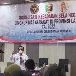 VoxLampung.com, Bandar Lampung – Kepala Dinas Kominfotik Provinsi Lampung, Ganjar Jationo menjadi narasumber pada kegiatan Sosialisasi Pembinaan Kesadaran Bela Negara di Provinsi