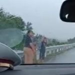 Basah Kuyup, Ibu dan 2 Anaknya Berjalan di Tol Lampung Saat Hujan Deras