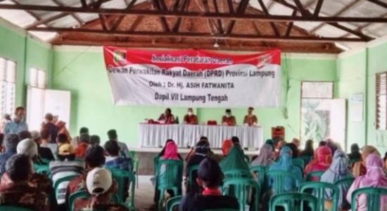 VoxLampung.com, Bandar Lampung -Anggota Komisi V Dewan Perwakilan Rakyat Daerah (DPRD) Lampung dr Asih Fatwanita menggelar sosialisasi perundang-undangan di Balai Desa Gunung