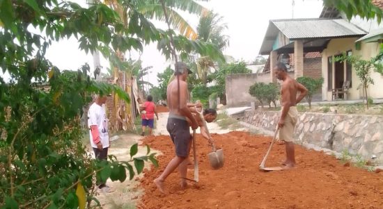 VoxLampung, Lamsel – Relawan Indonesia Movement (IM) Ganjar Lampung Selatan bersama Relawan Ganjar Mahfud Provinsi Lampung melakukan gotong-royong bersama masyarakat menimbun Jalan