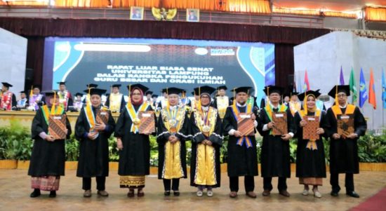 VoxLampung, Bandar Lampung – Universitas Lampung (Unila) menggelar rapat senat luar biasa untuk mengukuhkan tujuh guru besar baru, Senin, 6/11/2023. Kegiatan yang
