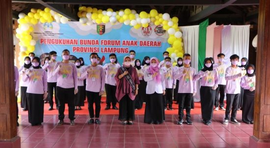 VoxLampung.com, Lampung Selatan – Bunda Forum Anak Daerah Provinsi Lampung Riana Sari Arinal mengukuhkan Kepengurusan Forum Anak Daerah Provinsi Lampung Periode 2021-2023.