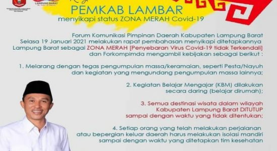 Voxlampung.com, Lampung Barat – Pemerintah Kabupaten Lampung Barat resmi memberlakukan pembatasan sosial bagi warganya. Hal itu dilakukan lantaran Lampung Barat berada di