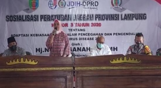 VoxLampung.com, Pesawaran – Anggota Fraksi PDIP DPRD Lampung, Nurhasanah, melakukan sosialisasi Peraturan Daerah Nomor 3 Tahun 2020, tentang Adaptasi Kebiasaan Baru, dalam