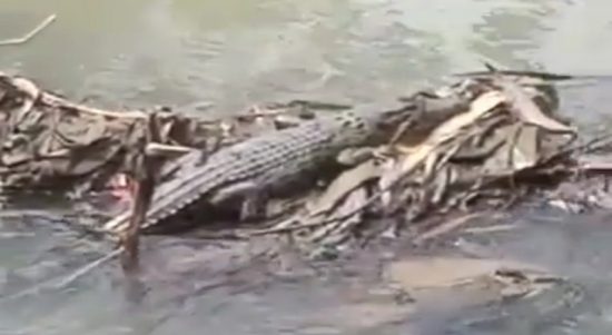 Ngeri! Kawanan Buaya Muncul di Sungai Dekat Pemukiman Warga Kedamaian